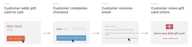 Gift cards are delivered by email and contain instructions to redeem them at checkout. Our gift cards have no additional processing fees.
